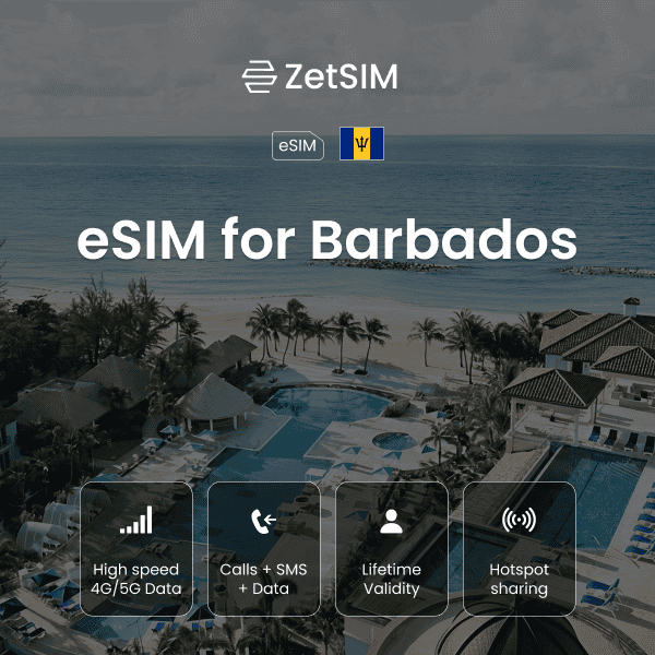 Barbados eSIM and travel smarter? Pick your plan, scan your QR, and experience Barbados with seamless data using ZetSIM!
