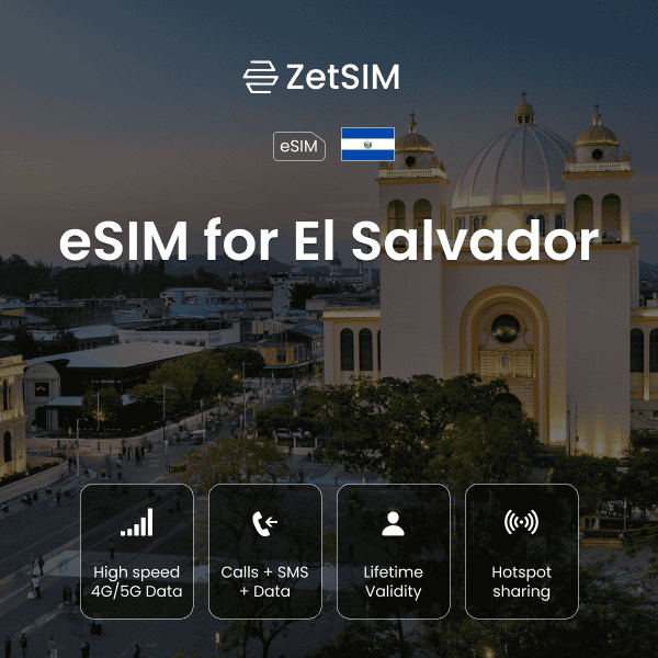 eSim for El Salvador eSIM and travel smarter? Pick your plan, scan your QR, and experience eSim for El Salvador with seamless data using ZetSIM!