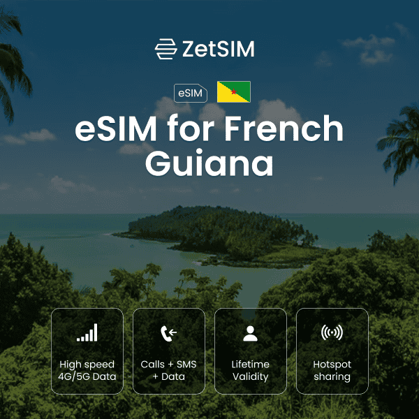 eSim for French Guiana eSIM and travel smarter? Pick your plan, scan your QR, and experience eSim for French Guiana with seamless data using ZetSIM!