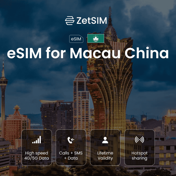 eSim for Macao China eSIM and travel smarter? Pick your plan, scan your QR, and experience eSim for Macao China with seamless data using ZetSIM!