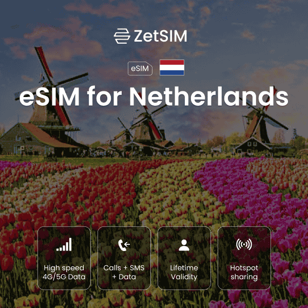 eSim for Netherlands eSIM and travel smarter? Pick your plan, scan your QR, and experience eSim for Netherlands with seamless data using ZetSIM!