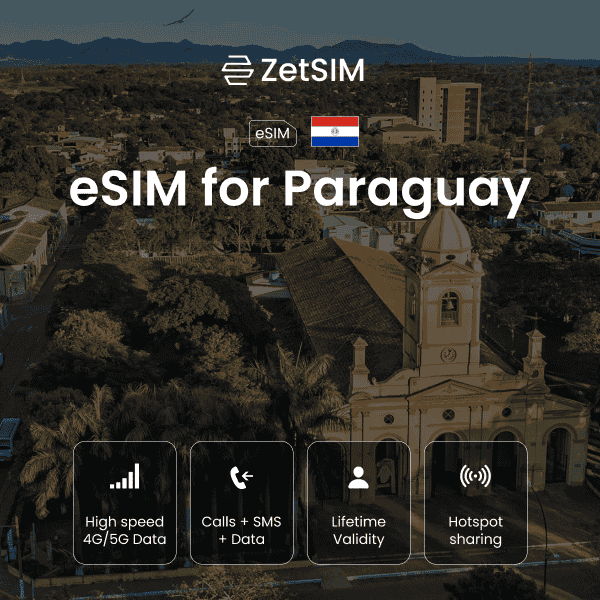 Paraguay eSIM and travel smarter? Pick your plan, scan your QR, and experience Paraguay with seamless data using ZetSIM!